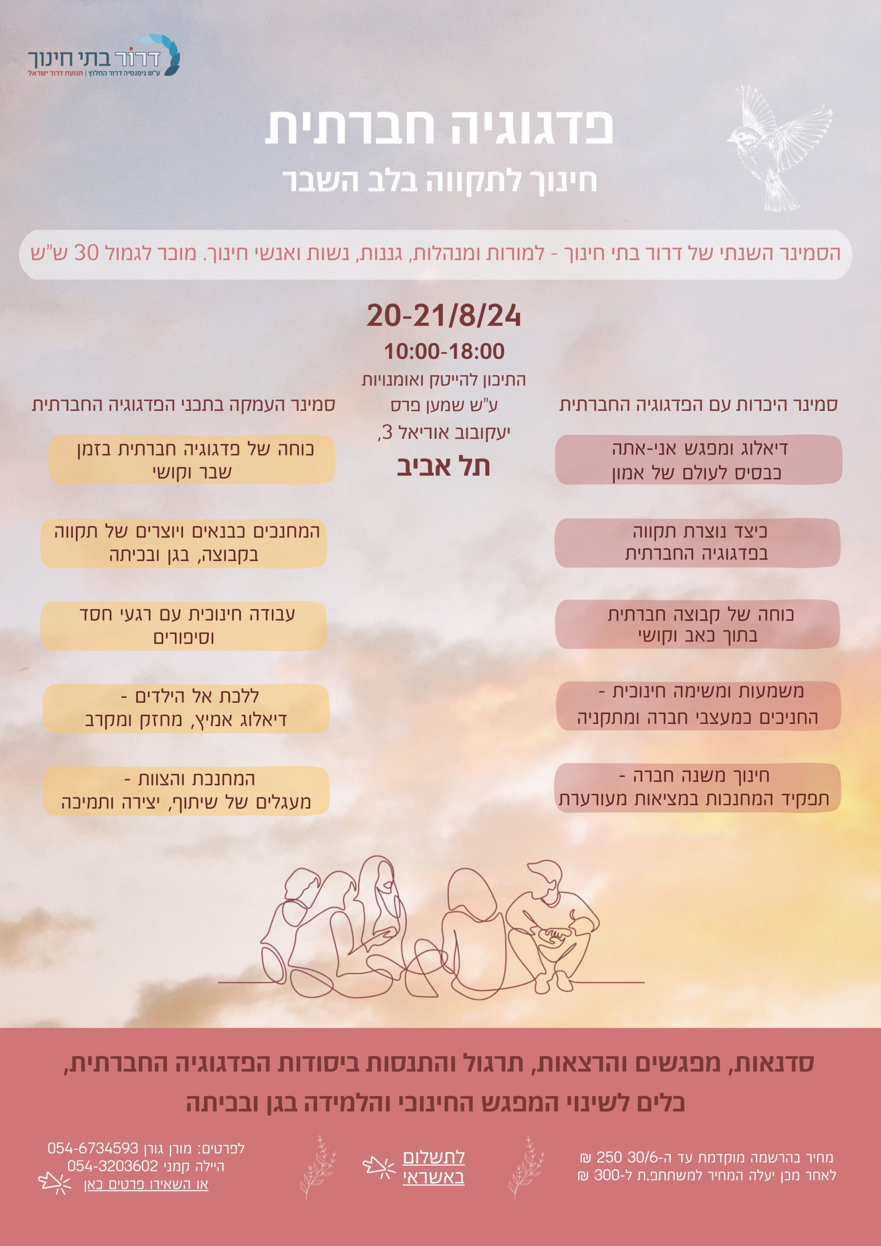 הסמינר מיועד לנשות ואנשי חינוך המעוניינים להכיר את הפדגוגיה החברתית ומוכר לגמול השתלמות 30 ש”ש באופק חדש ובעוז לתמורה.